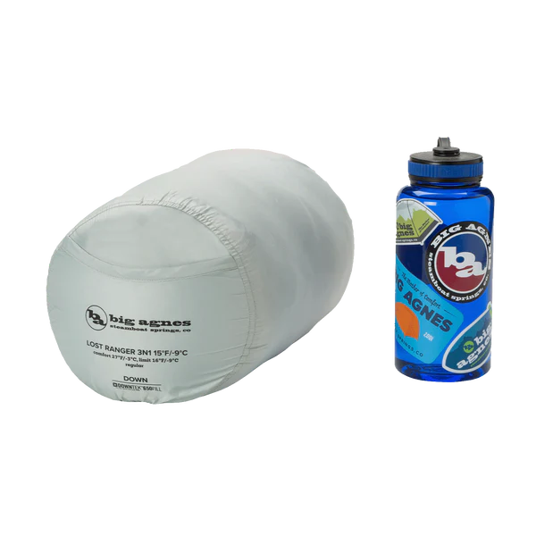To pack down this bag to its minimum compressed size, we recommend pairing it with a Big Agnes Compression Stuff Sack or Superlight Girdle