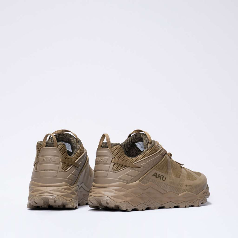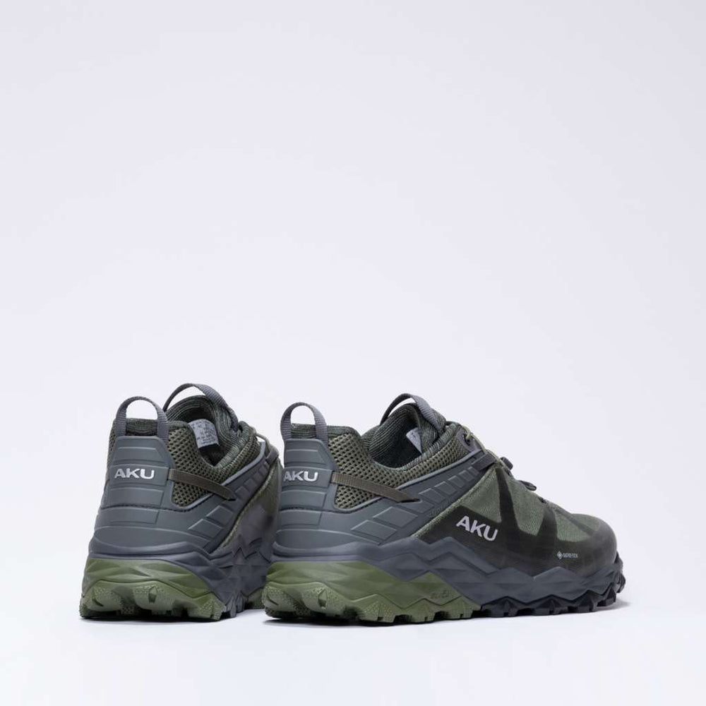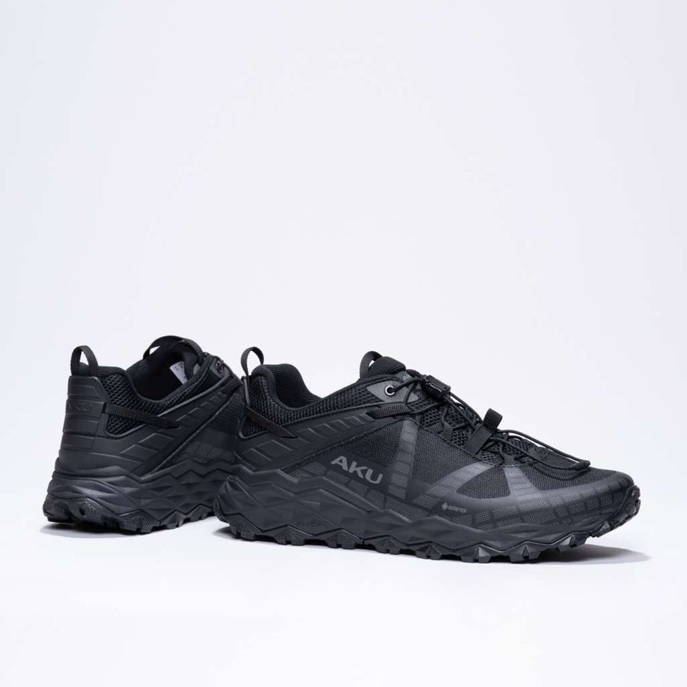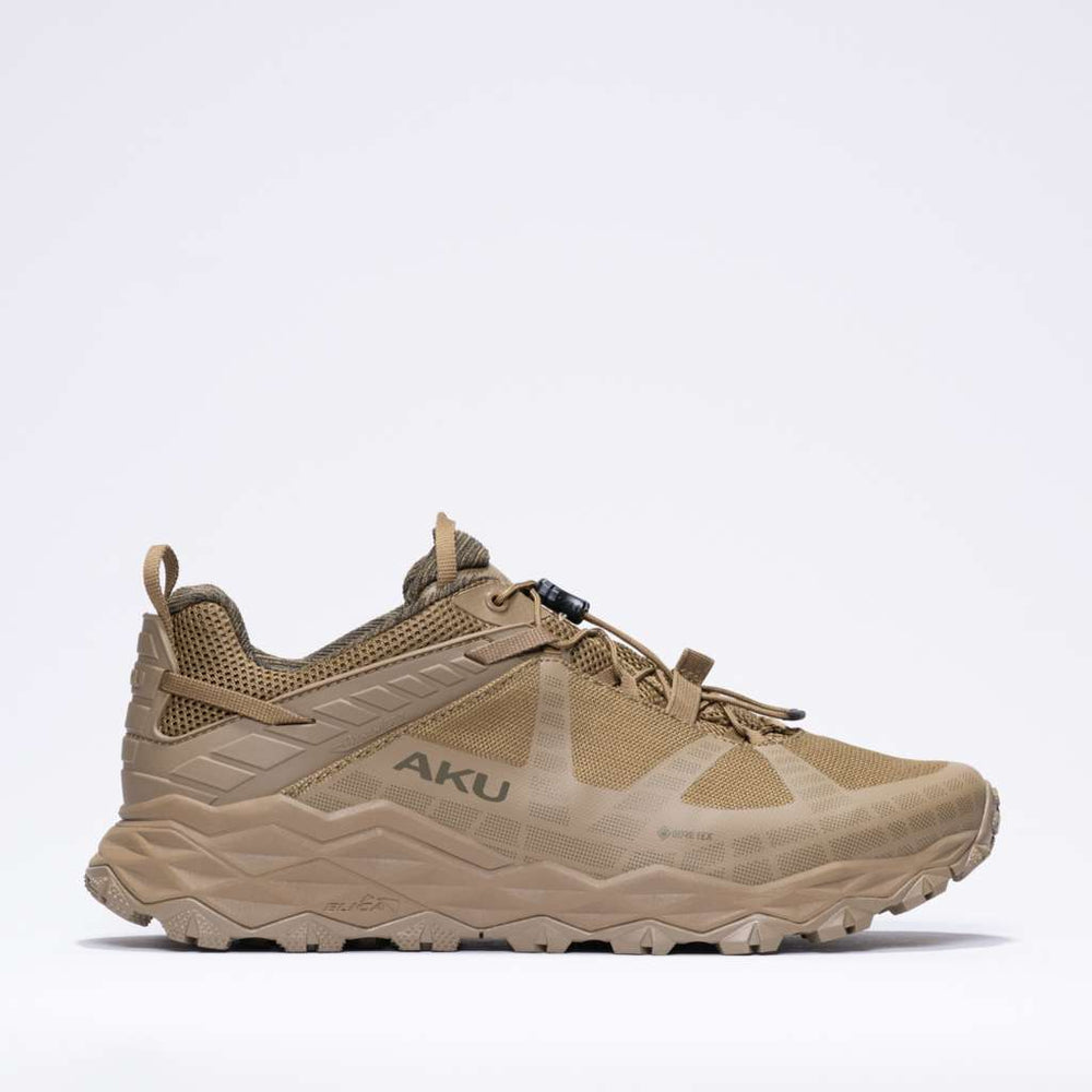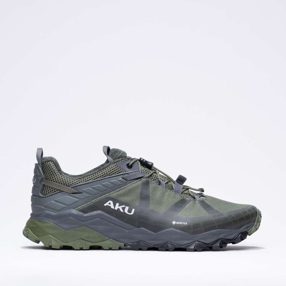 The AKU Flyrock GTX is a fast hiking shoe engineered for dynamic movement, with the technical edge and modern trail-runner aesthetic demanded by today’s explorers — whether you're navigating rocky trails or concrete streets.