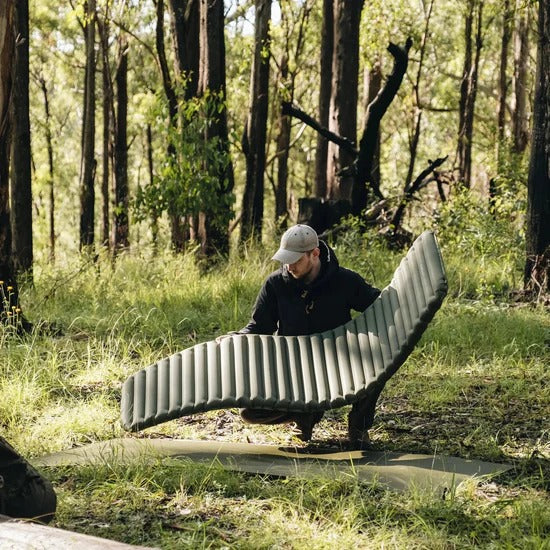 Want to maximise your recovery on overnight adventures? A luxurious 7.5cm thick, this Ultralight Insulated Sleeping Mat provides the perfect level of cushioning, support and stability. The secret is in our specialised air-cell technology, which disperses your body weight across the entire surface of the pad for optimal firmness, no matter what sleeping position you prefer. For quick, breath-free inflation, we recommend using our Ultralight Pump Bag (compatible with all Alton inflatable sleeping mats). -