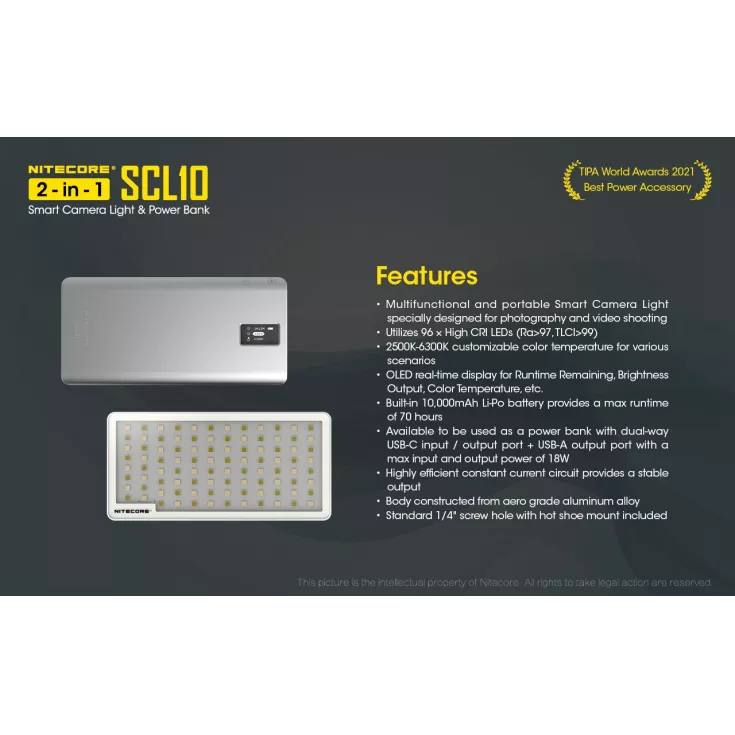 Nitecore SCL10 Smart Camera Light & Power Bank